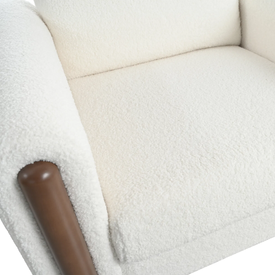 Luxury and Artistic: The single sofa is enveloped in sumptuous upholstered, imparting a sense of opulence. It skillfully combines modern style with vintage charm, offering a soft and comfortable touch. The teddy velvet accent chair surface boasts a unique lustre and exquisite texture, giving it a distinctive quality and appearance. The combination of curved armrests and embedded wooden legs truly has unique artistic qualities.