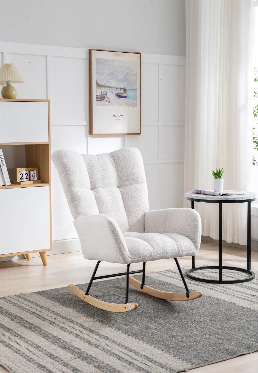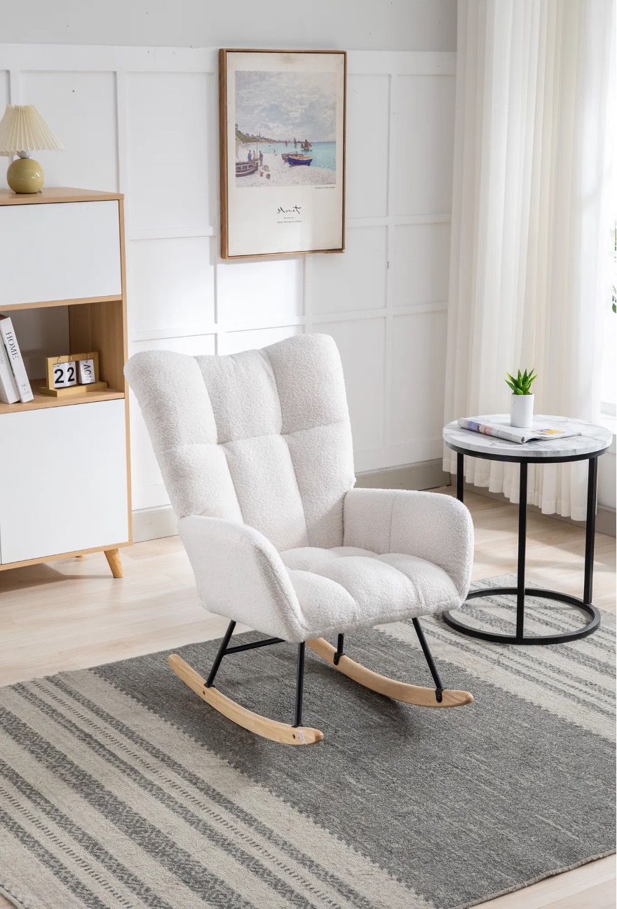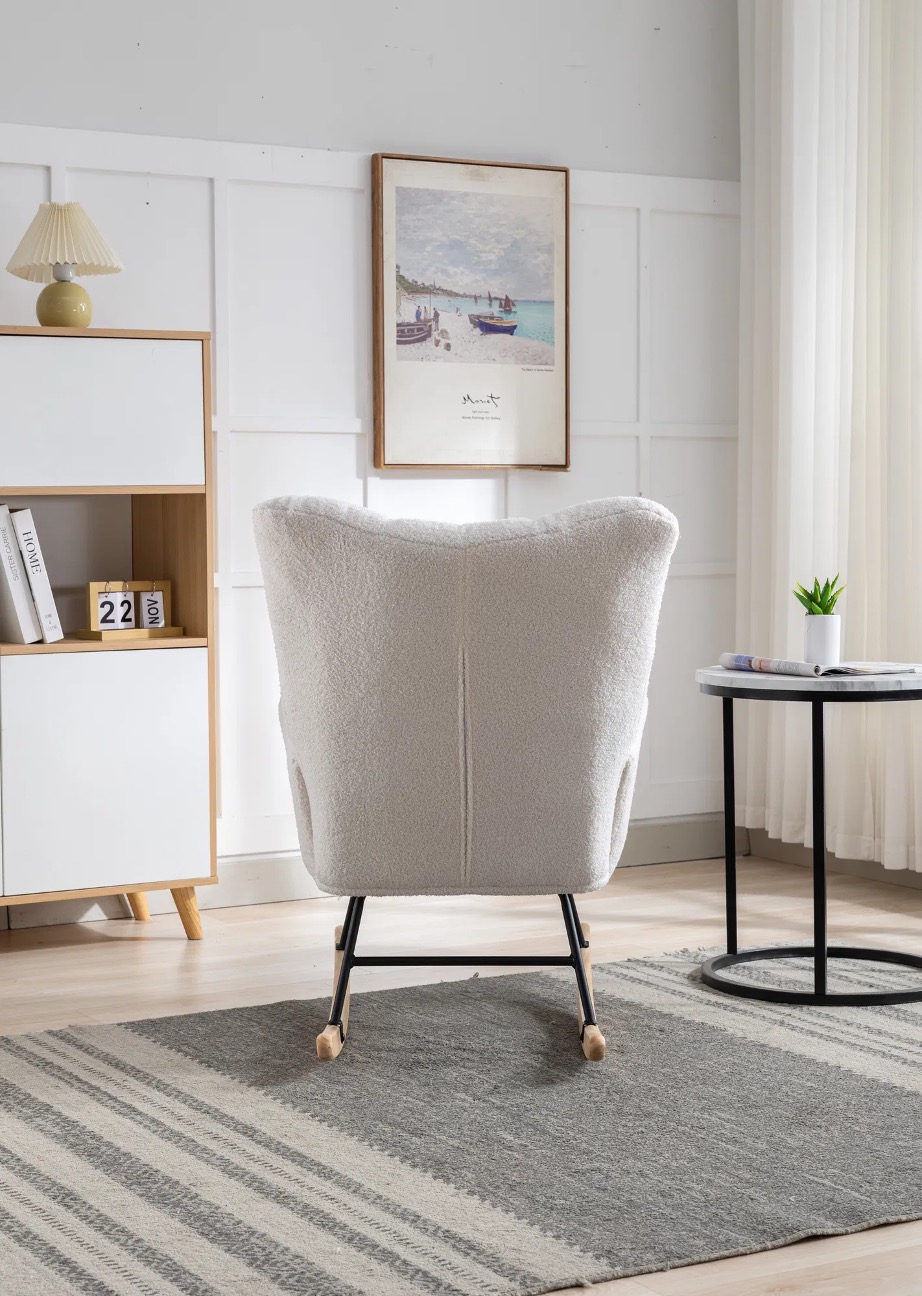 [High-quality]: The solid wood bottom and metal frame provide stable support for the rocking chair nursery recliner. With the safe bottom tilt design, both adults and children can enjoy the fun and leisure time brought by the rocking chair indoor. It is suitable for the living room, bedroom, nursery, porch, office.