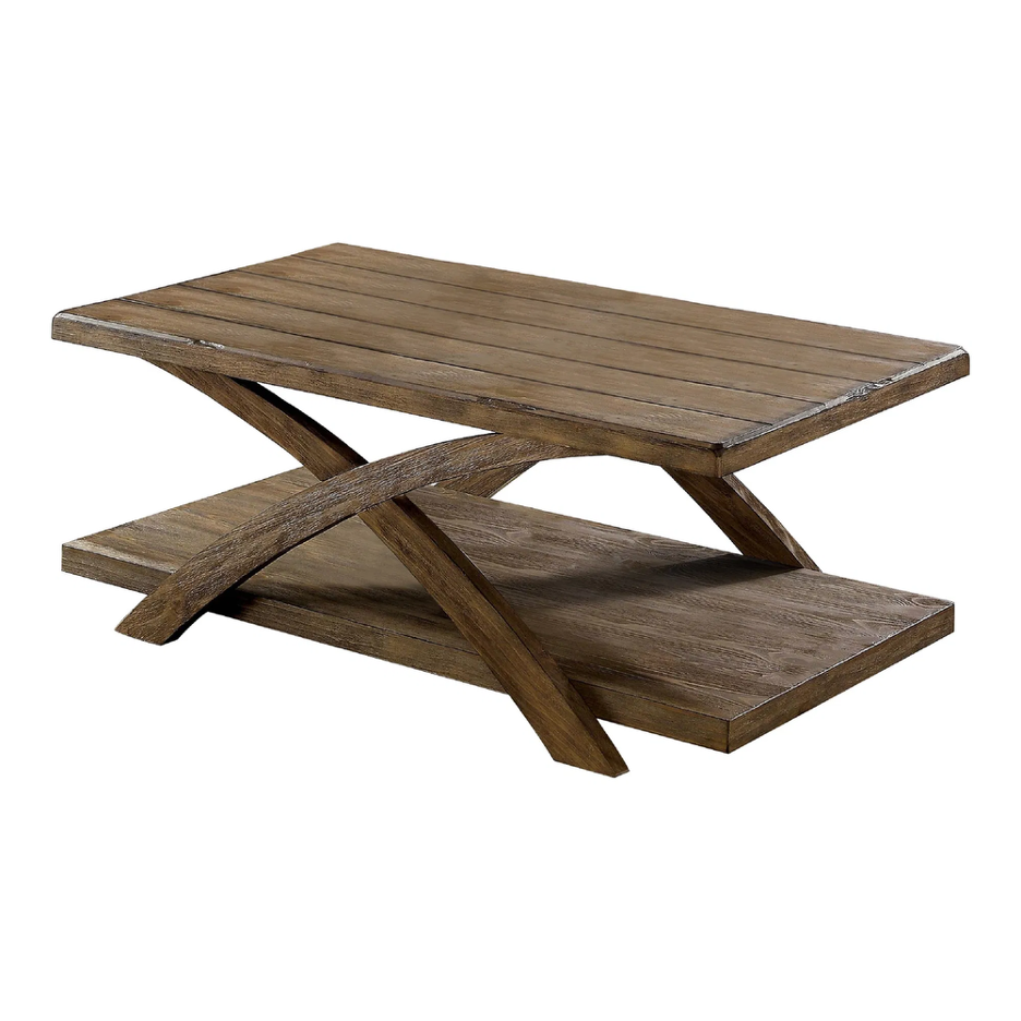 Angled x-shaped table supports bring some flair to this otherwise minimalist table collection. With such a gorgeous earthy tone, this antique light oak finished table doesn't need much more than a plank style table top to showcase as much wood grain variety as possible. Perfect for any home setting that wants a touch of calming natural hues.
