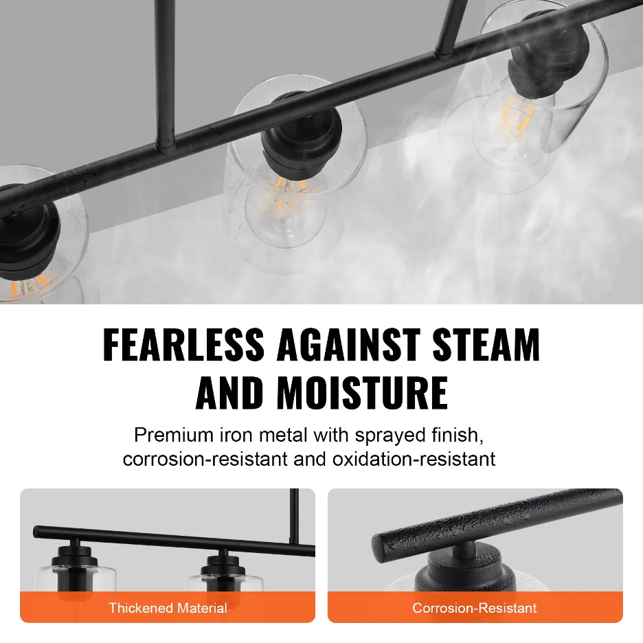 3.Exceptional Durability, Built to Last: Built with a sturdy metal construction, our chandeliers for dining room ensures long-lasting stability. The black iron frame paired with clear glass lampshade creates a natural flow in any room. Its fade-resistant and corrosion-resistant surface adds a rustic yet elegant touch to your interior decor, enhancing both style and durability.